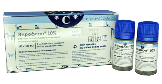 Энрофлон 5% и 10% раствор для орального применения – антимикробный лекарственный препарат группы фторхинолонов.