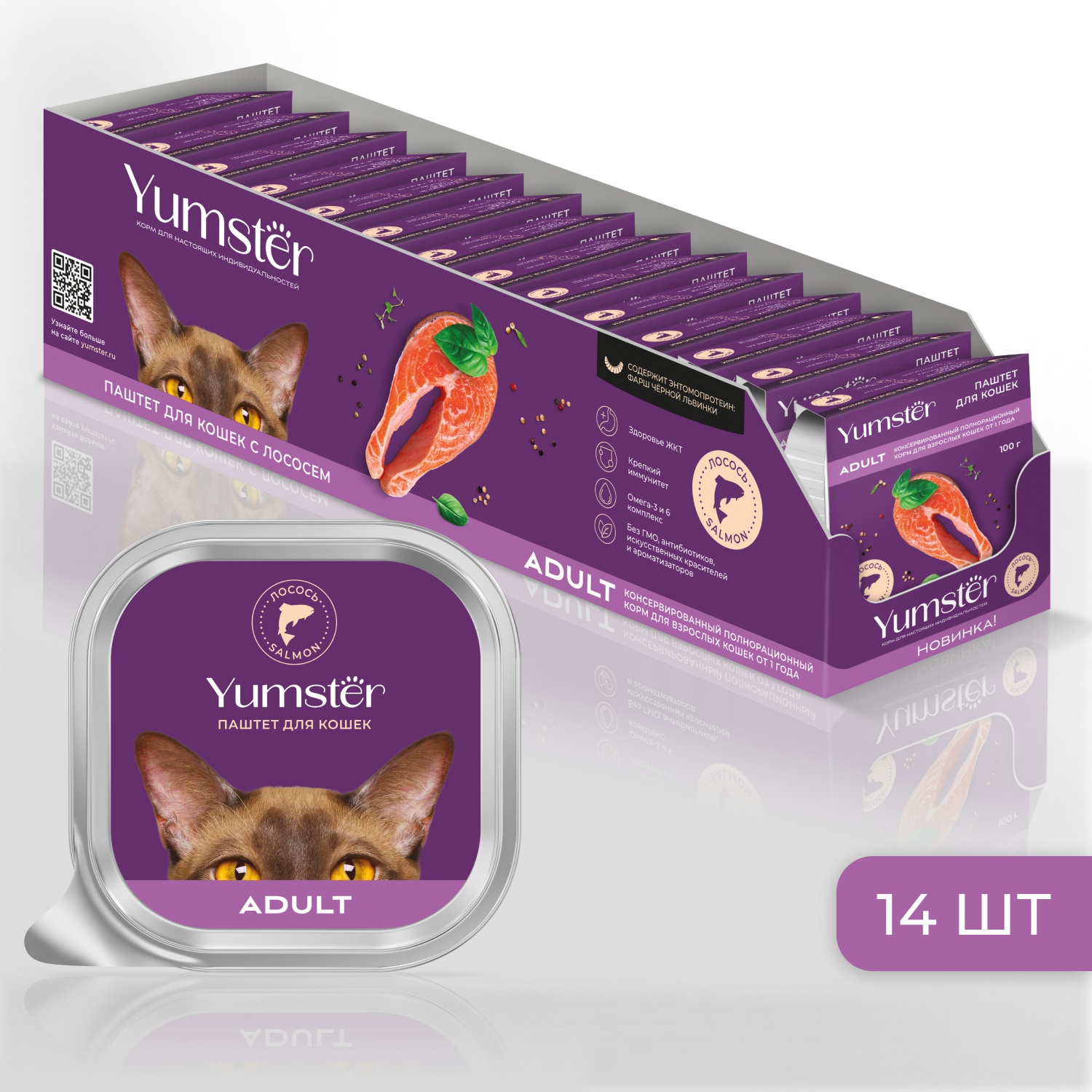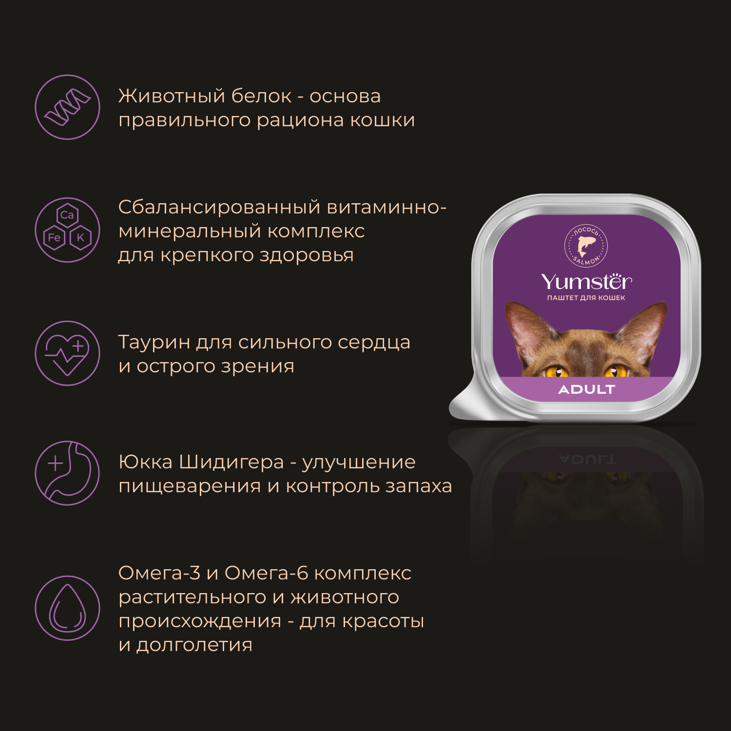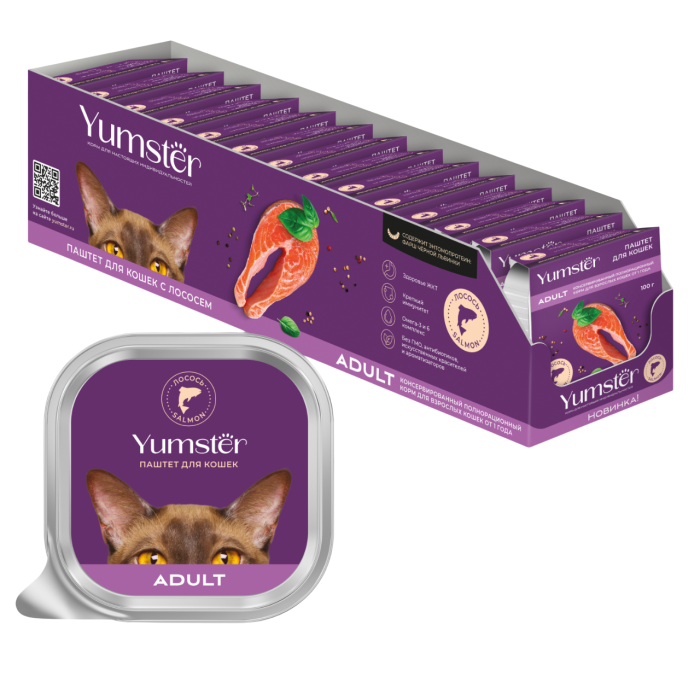 Каждая кошка - яркая индивидуальность. Подарите ей наслаждение с разнообразием вкусов Yumster. Ямстер - богатство выбора и натуральная польза для Вашего питомца!