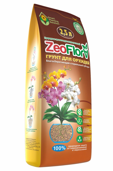Влагосберегающий грунт ZeoFlora («ЦеоФлора») для Орхидей – стерильный, пористый, влагоемкий грунт для орхидей на основе природного цеолитсодержащего минерала. Он обеспечивает оптимальную аэрацию корней и запас необходимого количества воды без их переувлажнения.