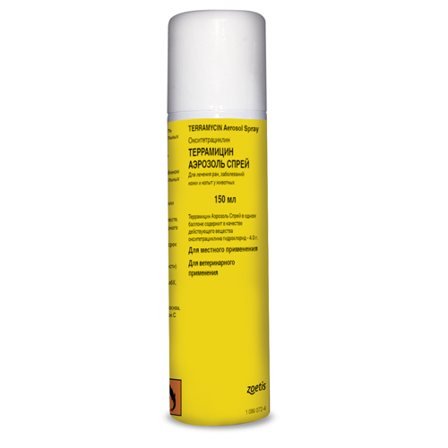 Террамицин Аэрозоль спрей по степени воздействия на организм относится к малоопасным веществам (4 класс опасности по ГОСТ 12.1.007).