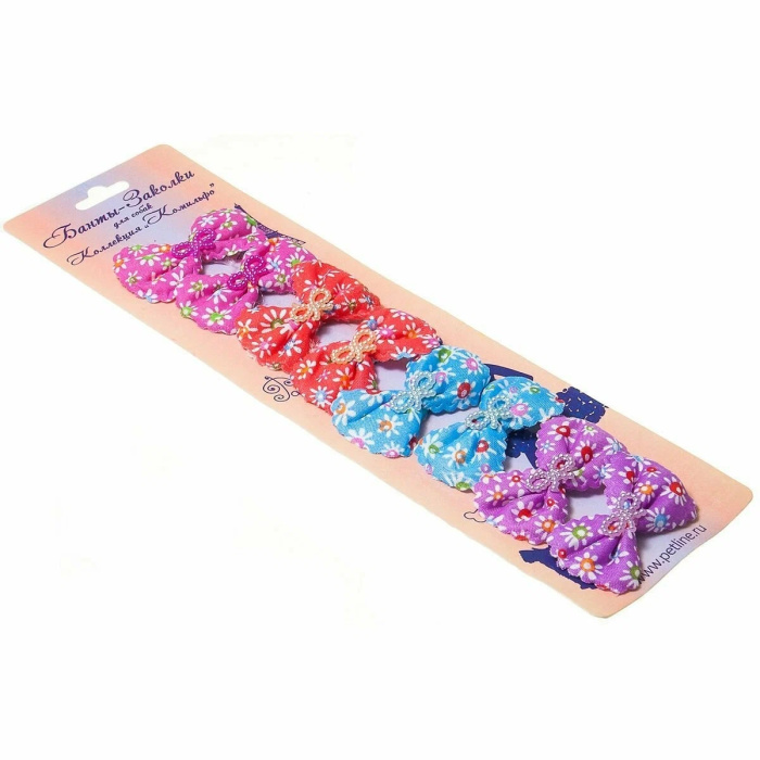 Бантик-заколка для животных - красивое, стильное украшение и фиксатор для волос питомца. Заколка подойдет для создания причесок и украшения питомцев различных пород. Прочный металлический зажим подойдет не только для повседневных хвостиков, но выдержит сложные прически у выставочных собак. Материал: ткани различных структур, плотности и фактуры, пластик, сталь.