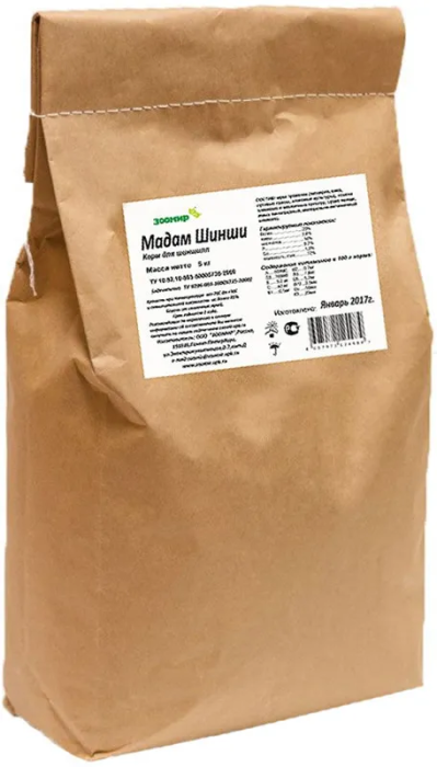 Корм сбалансирован по всем питательным веществам и обеспечивает полноценное питание этих очаровательных зверьков. Состав корома разработан специалистами с учетом всех пищевых потребностей шиншилл и включает в себя все необходимые витами, микро- и макроэлементы. Будьте уверены, корм "Мадам ШИНШИ" обеспечит Вашему питомцу крепкое здоровье, высокий иммунитет и красивую пушистую шубку. Не следует забывать, что шиншилла должна обязательно получать вволю качественное сено, а в теплое время года - свежую траву. Важным дополнением рациона являются также веточки деревьев (ивы, березы, осины, дуба, яблони).