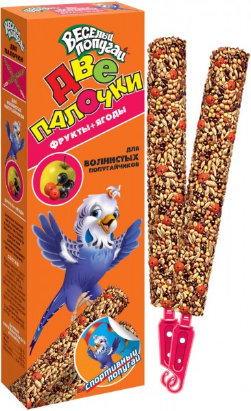 ЗООМИР Веселый попугай "Две палочки" фрукты + ягоды для волнистых попугайчиков