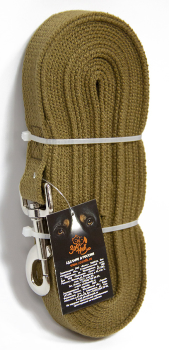 Поводок брезентовый для собак 7м*25мм, ЗООНИК, зеленый