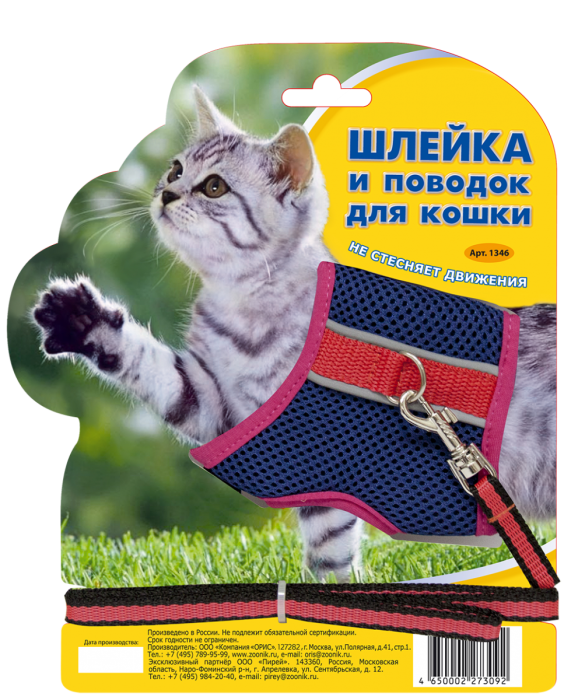 Комплект шлейка из сетки + поводок на блистере, стропа 10мм.(№1) Зооник (ОГ28-33см, ОШ19-25см)